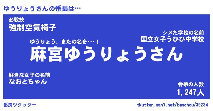 | ファンタジー風あだ名 | 『ユウフェル』『エターナルユウリョウー』 |
