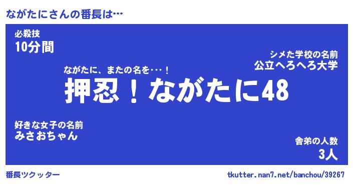 | ポケモン風あだ名 | 『ナガチュウ』『ナガタダネ』 |