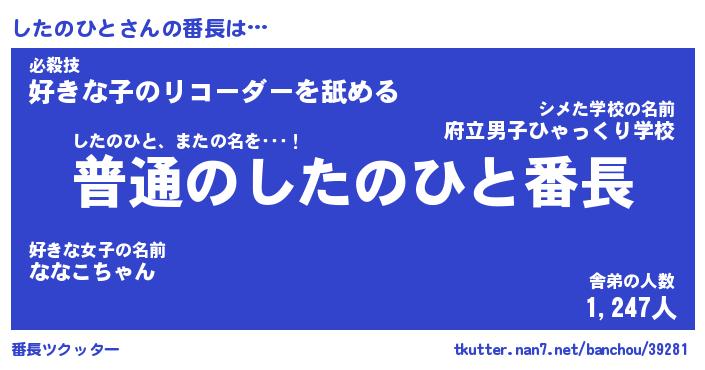 | ポケモン風あだ名 | 『シタチュウ』『シタノダネ』 |