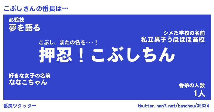 | ポケモン風あだ名 | 『コブチュウ』『コブシダネ』 |