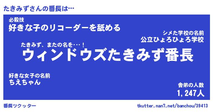| 肩書あだ名 | 『たきみず店長』『たきみず国家主席』 |