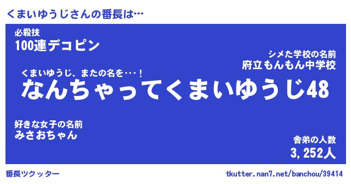 | 肩書あだ名 | 『くまいゆうじ御曹司』 |