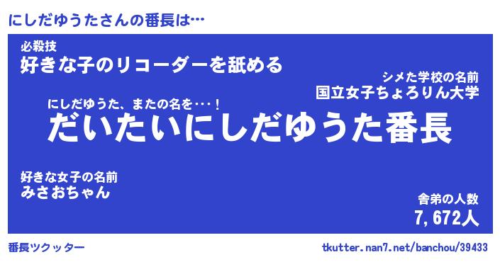 | ポケモン風あだ名 | 『ニシチュウ』『ニシダダネ』 |