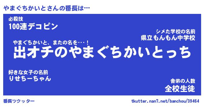 | 男性向けラノベタイトル風あだ名 | 『やまぐちかいとの憂鬱』 |