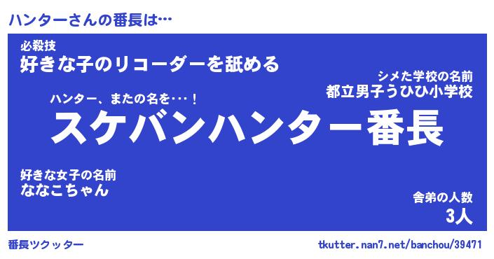 | 意味不明あだ名 | 『ペロリンハンター』『永久保存ハンター』 |