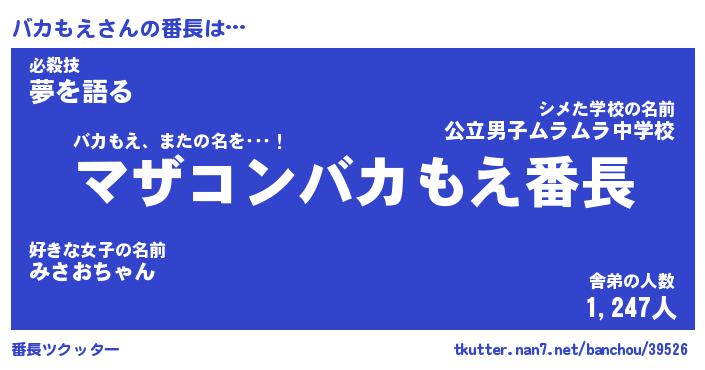 | ヒーロー風カッコイイあだ名 | 『スーパーバカモエ』『銀牙騎士バカ』 |