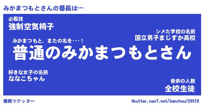 | 肩書あだ名 | 『みかまつもと社長』『みかまつもと班長』 |