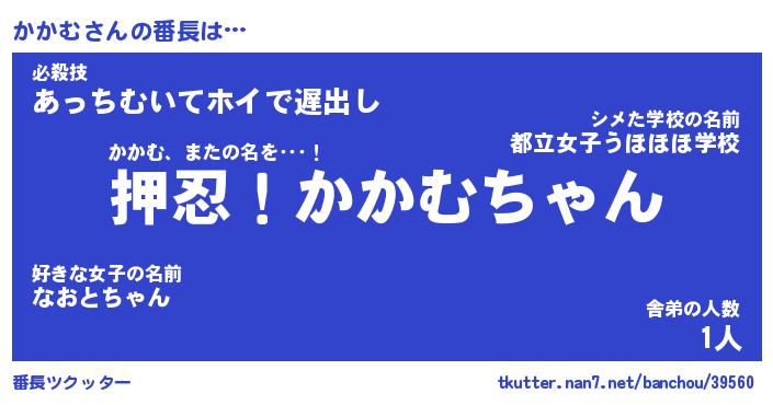 | ヒーロー風カッコイイあだ名 | 『スーパーカカム』『ウルトラかかむマン』 |