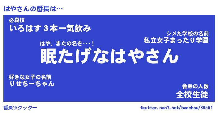 | ヘコむあだ名 | 『はやにー』『なまこ酢』『はやっ子』 |