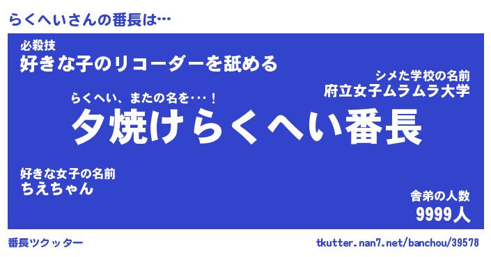 | 意味不明あだ名 | 『ペロリンらくへい』『永久保存らくへい』 |