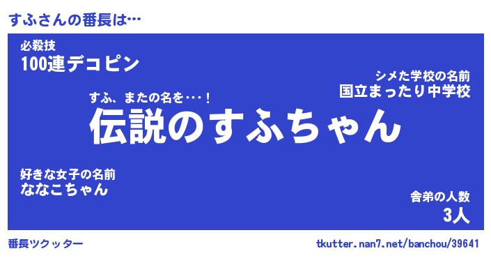 | ヒーロー風カッコイイあだ名 | 『スーパースフ』『ウルトラすふマン』 |