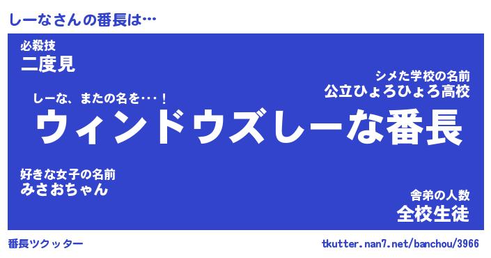 | 伝説のあだ名 | 『伝説の竜騎士しーな』 |