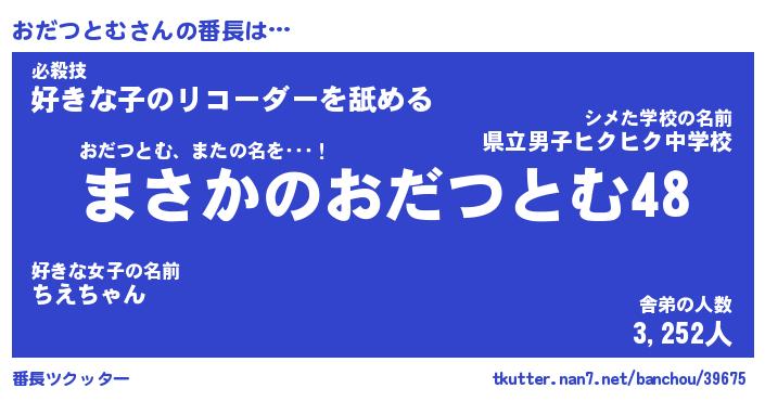 | 肩書あだ名 | 『おだつとむCEO』『おだつとむ総理大臣』 |