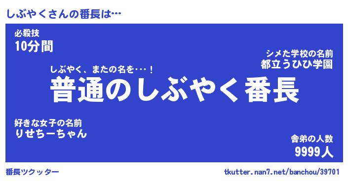 | 意味不明あだ名 | 『ペロリンしぶやく』『永久保存しぶやく』 |