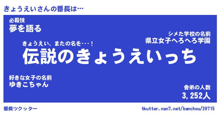 | ヒーロー風カッコイイあだ名 | 『スーパーキョウエイ』『幻影騎士キョ』 |