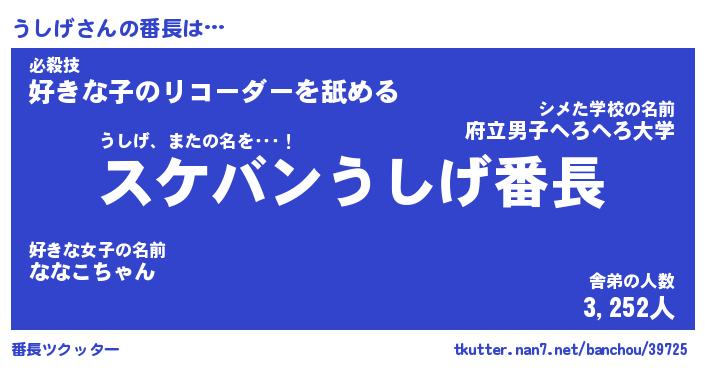 | 意味不明あだ名 | 『ペロリンうしげ』『うしげフォーエバー』 |