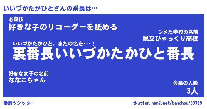 | ピコ太郎風あだ名 | 『イコ太郎』『ピイ五郎』『イイ八郎』 |