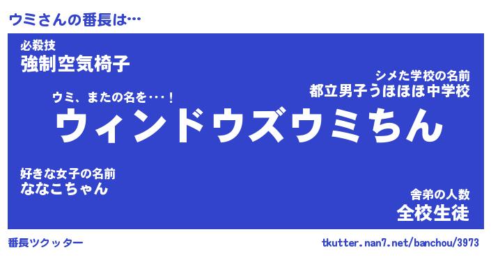 | ヘコむあだ名 | 『ウミもー』『つくし』『ウミを』 |
