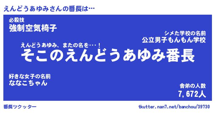 | 肩書あだ名 | 『えんどうあゆみ御曹司』 |
