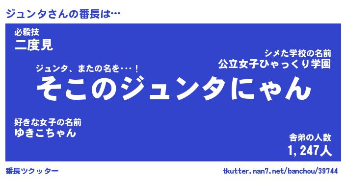 | 意味不明あだ名 | 『ペロリンジュンタ』『永久保存ジュンタ』 |