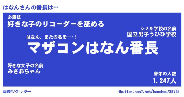 | 意味不明あだ名 | 『ペロリンはなん』『はなんフォーエバー』 |