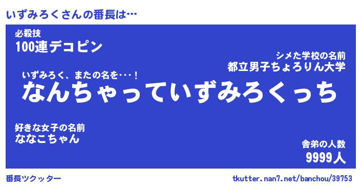 | ポケモン風あだ名 | 『イズチュウ』『イズミダネ』 |