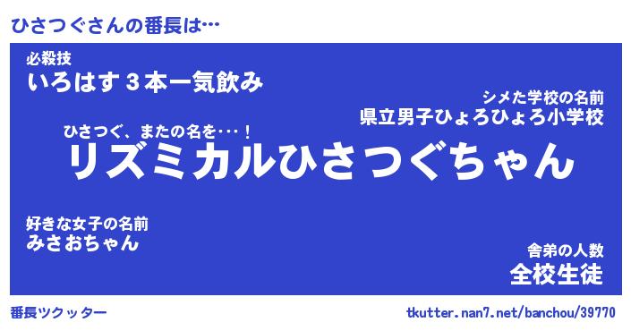 | 肩書あだ名 | 『ひさつぐ店長』『ひさつぐ大統領』 |