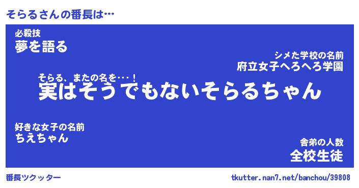 | 意味不明あだ名 | 『ペロリンそらる』『そらるフォーエバー』 |