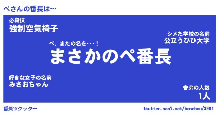 | ヘコむあだ名 | 『ペっふぃ~』『なまこ酢』『ペお』 |