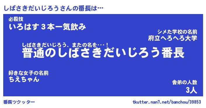 | ヒーロー風カッコイイあだ名 | 『スーパーシバサキダイジロウ』 |
