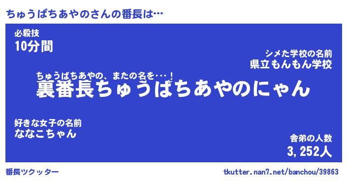 | ヒーロー風カッコイイあだ名 | 『スーパーチュウバチアヤノ』 |