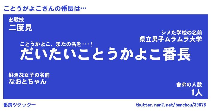 | ヘコむあだ名 | 『こともー』『酢こんぶ』『ことお』 |