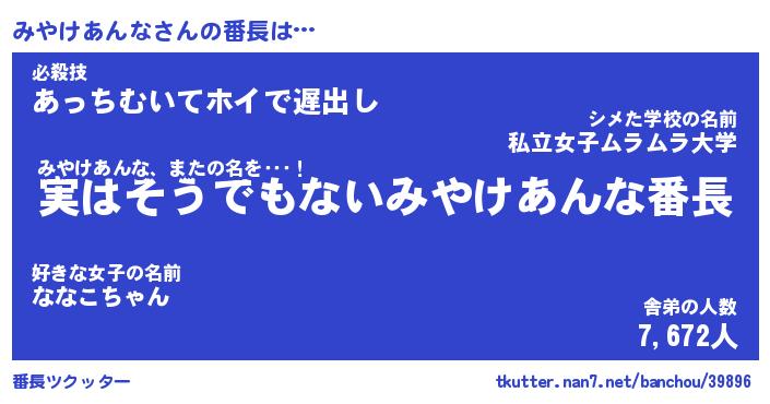 | ポケモン風あだ名 | 『ミヤチュウ』『ミヤケダネ』 |