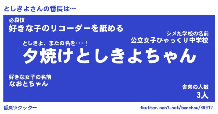 | 意味不明あだ名 | 『ペロリンとしきよ』『永久保存としきよ』 |
