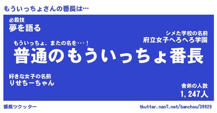| ポケモン風あだ名 | 『モウチュウ』『モウイダネ』 |