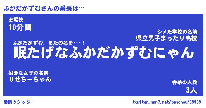 | ポケモン風あだ名 | 『フカチュウ』『フカダダネ』 |