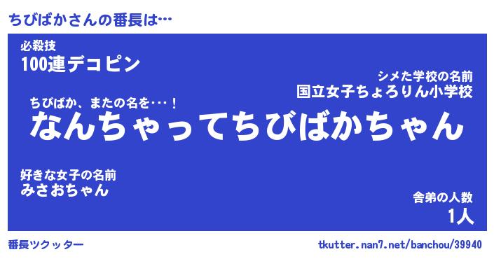 | 意味不明あだ名 | 『ペロリンちびばか』『永久保存ちびばか』 |