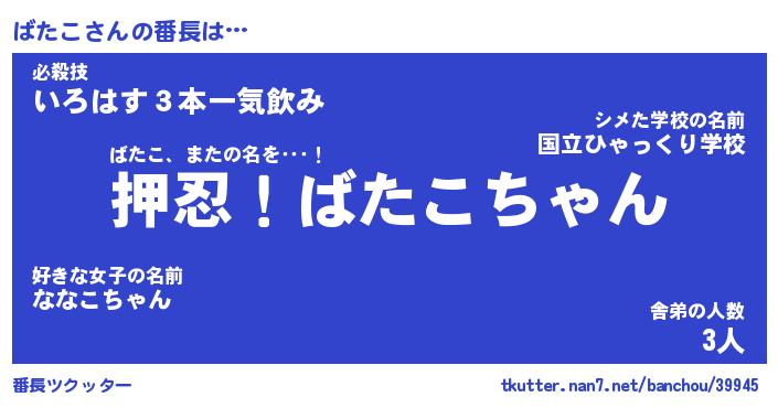 | ヘコむあだ名 | 『ばたもー』『なまこ酢』『ばた太郎』 |