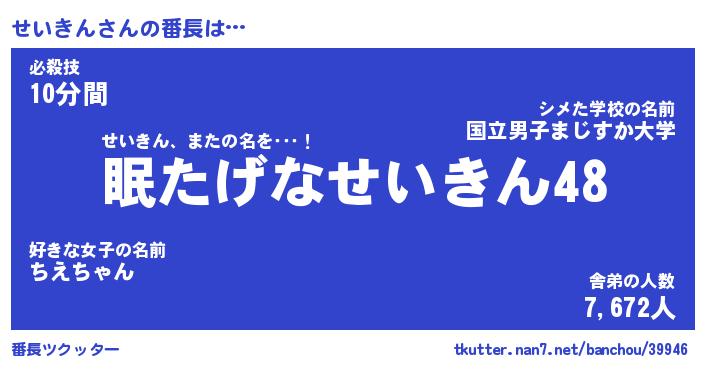 | ヒーロー風カッコイイあだ名 | 『スーパーセイキン』『魔戒騎士セイ』 |