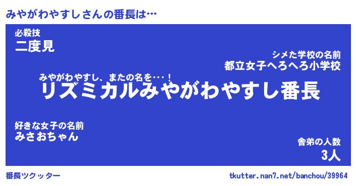 | ポケモン風あだ名 | 『ミヤチュウ』『ミヤガダネ』 |