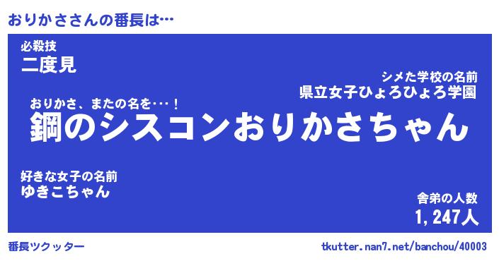 | ヘコむあだ名 | 『おりふぇ~』『牛乳』『おり太郎』 |