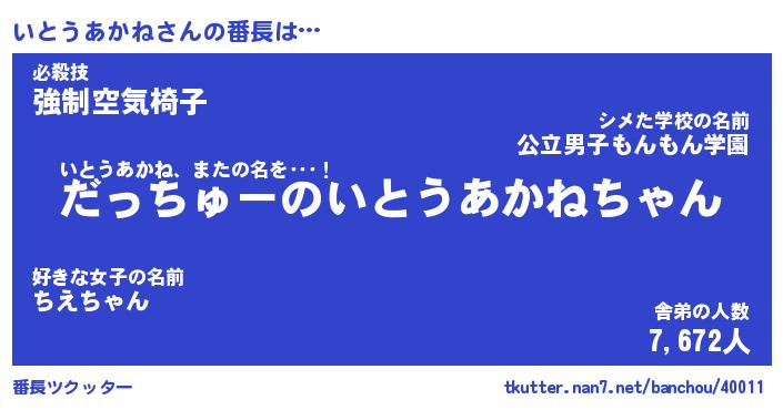 | ピコ太郎風あだ名 | 『イコ四郎』『ピイ八郎』『イト一郎』 |