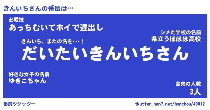 | 意味不明あだ名 | 『ペロリンきんいち』『永久保存きんいち』 |