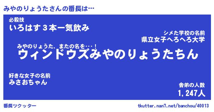 | 意味不明あだ名 | 『ペロリンみやのりょうた』 |