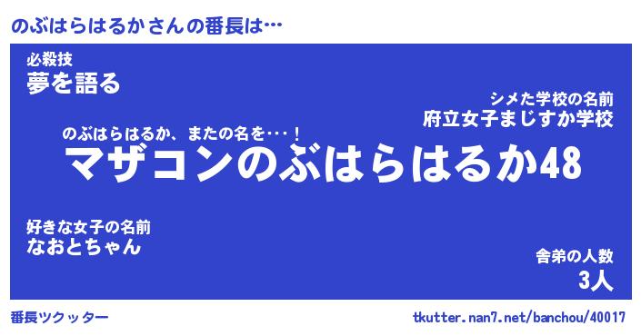 | 男性向けラノベタイトル風あだ名 | 『ノブハラハルカアートオンライン』 |