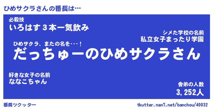 | ファンタジー風あだ名 | 『ヒメフェル』『エターナルヒメサクラー』 |