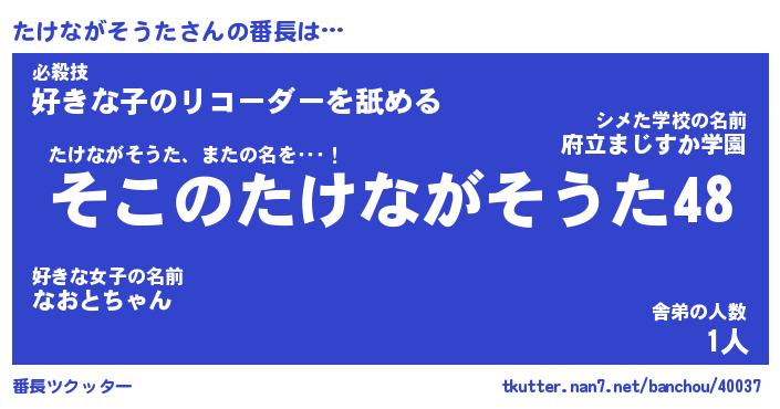 | 伝説のあだ名 | 『不死鳥のスナイパーたけながそうた』 |