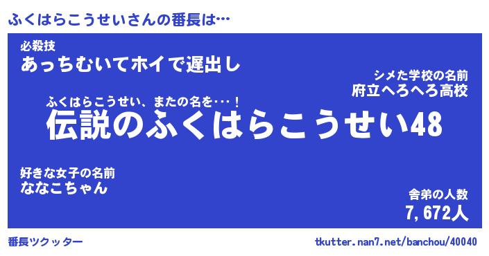 | ヘコむあだ名 | 『ふくにー』『つくし』『ふくお』 |