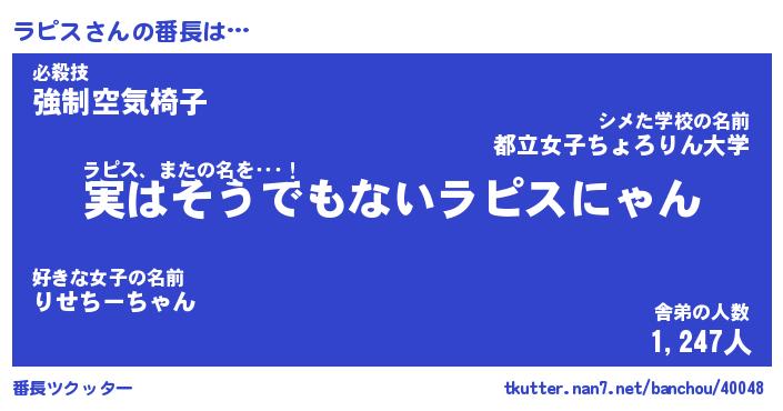 | 2回繰り返すあだ名 | 『ラピラピ』『ララピピ』『いらいら』 |