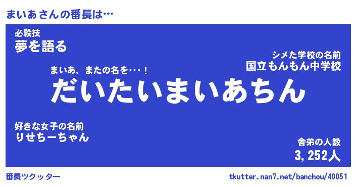 | 肩書あだ名 | 『まいあ店長』『まいあ大統領』 |